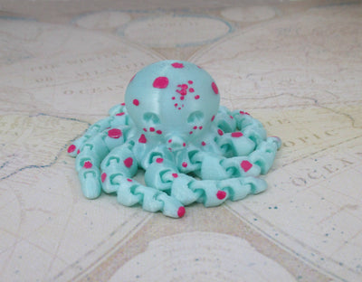 This cute little gal is made from Biodegradable PLA. Here you see her printed in a bright shade of Hot Pink. Several other colors are shown in the photos. We have 22 great colors available! We can also give your octopus polka-dots! Check out our shop for that listing along with our great Octopus Stand! Now your little gal can feel like she's swimming through the ocean!