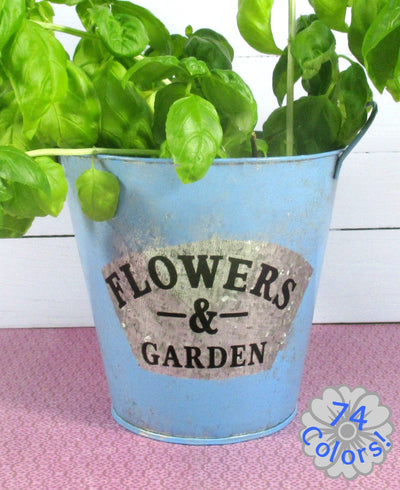 What a great way to add a touch of rustic country to your home, garden, wedding, or bridal shower! This cute metal bucket is a sturdy little thing with 2 handles. "Flowers & Garden" is printed on both sides. The print is slightly offset from the center of the handles giving it a cute & quirky look.